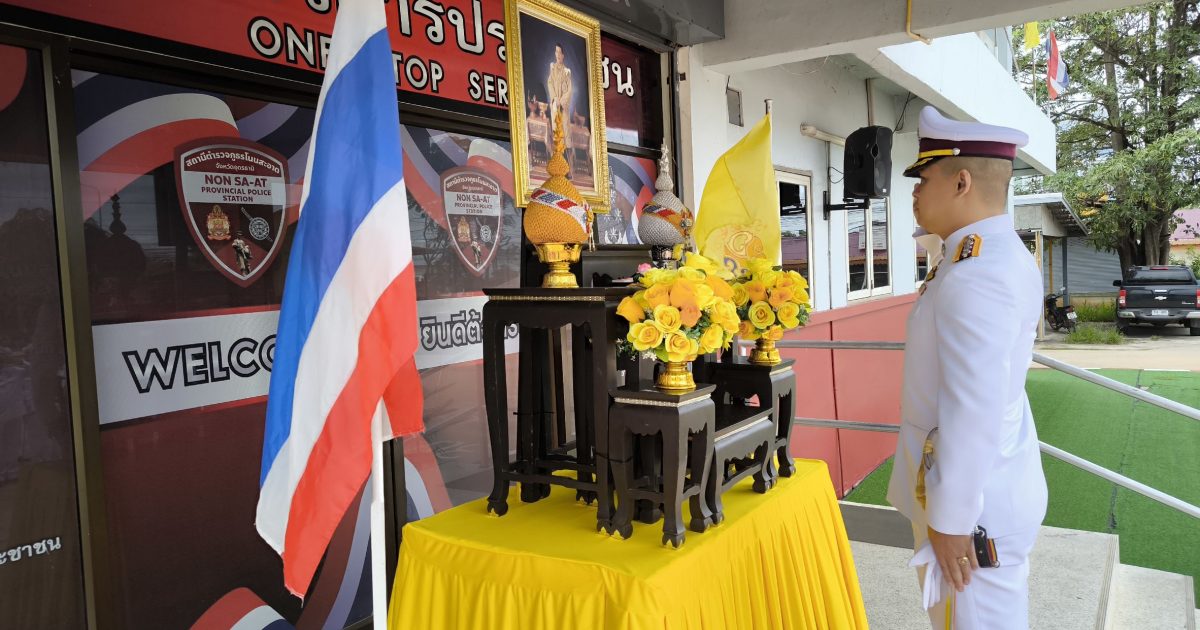 -เวลา 17.00 น. พ.ต.อ.ปฐวี ก้อนวิมล ผกก.สภ.โนนสะอาด พร้อมด้วยข้าราชการตำรวจ สภ.โนนสะอาดได้ร่วมพิธีถวายเครื่องราชสักการะ วางพานพุ่ม และจุดเทียนถวายพระพรชัยมงคล เนื่องในโอกาสพระราชพิธีมหามงคลเฉลิมพระชนมพรรษา 6 รอบ 28 กรกฎาคม 2567 โดย นายชวิศ ป้องขันธ์ นายอำเภอโนนสะอาด เป็นประธานพิธี มีข้าราชการทุกภาคส่วน รัฐวิสาหกิจ ส่วนท้องถิ่น ฝ่ายปกครอง และประชาชนร่วมพิธีโดยพร้อมเพรียงกัน ณ หอประชุมที่ว่าการอำเภอโนนสะอาด