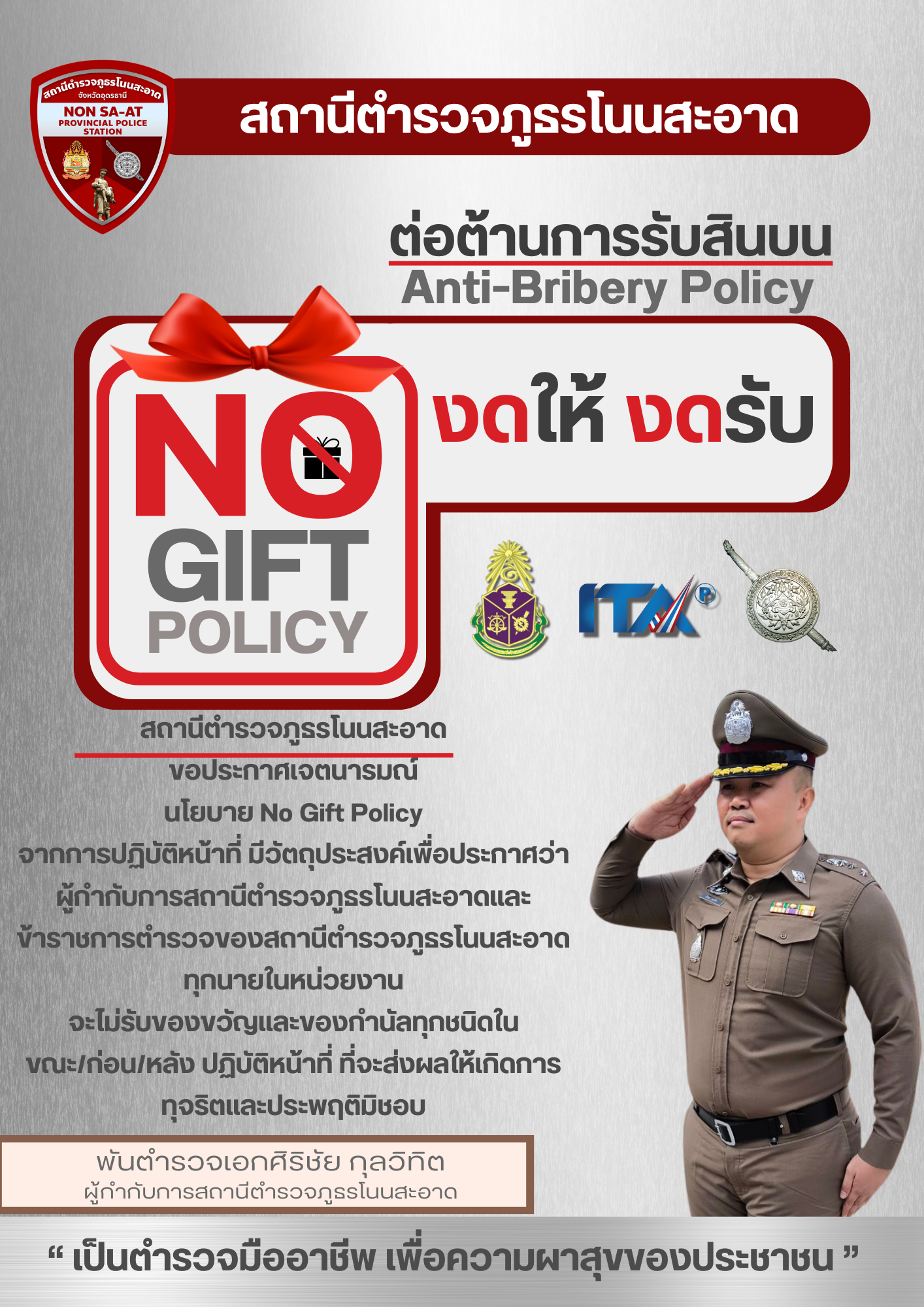 ประกาศนโยบาย No Gift Policy จากการปฏิบัติหน้าที่ พ.ต.อ.ศิริชัย กุลวิทิต ผกก.สภ.โนนสะอาด และข้าราชการ