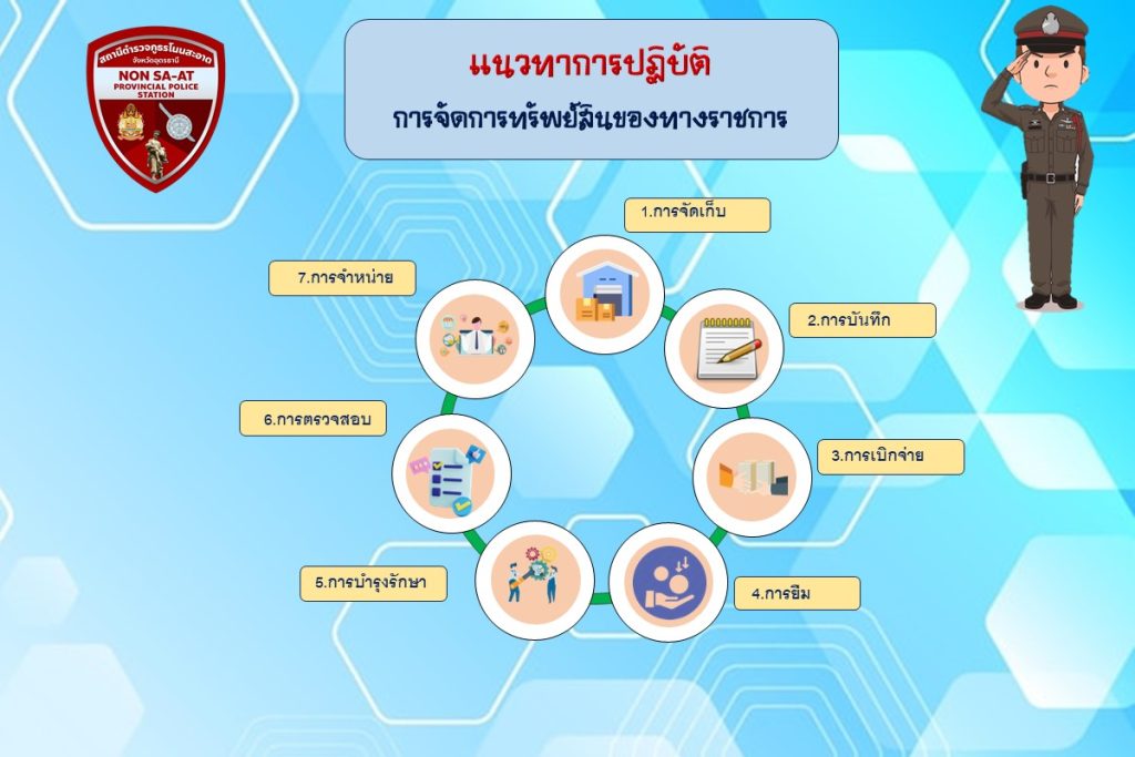 แจ้งให้ข้าราชการตำรวจ ทุกท่านทราบ เกี่ยวกับการจัดการทรัพย์สิน ของกลางและของบริจาคในการประชุมประจำเดือนเพื่อให้ทุกท่านเข้าใจ ตรงกัน