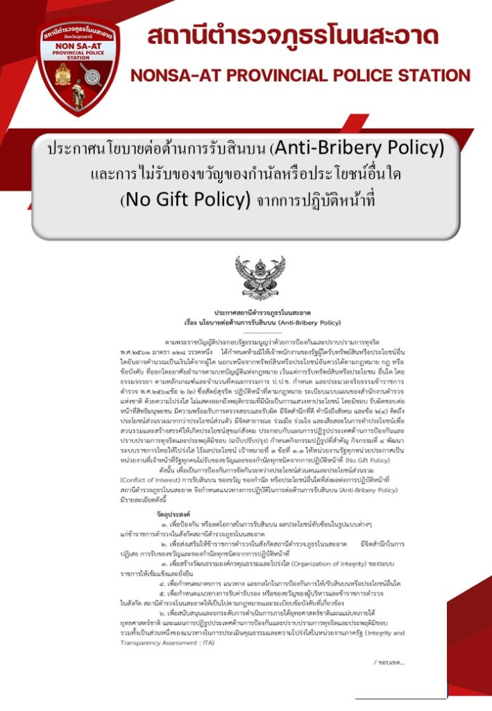 O18 ประกาศนโยบายต่อต้านการรับสินบน (Anti-Bribery Policy)