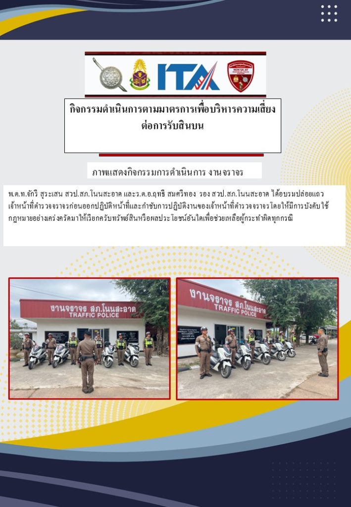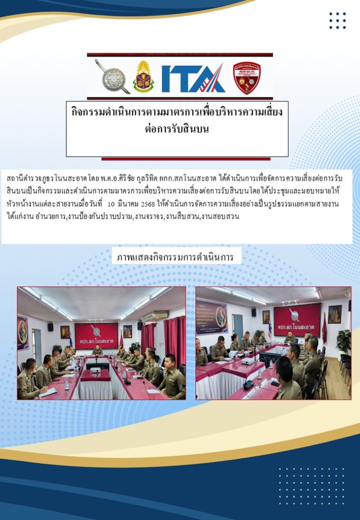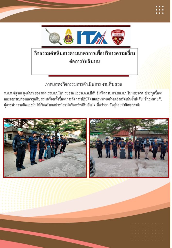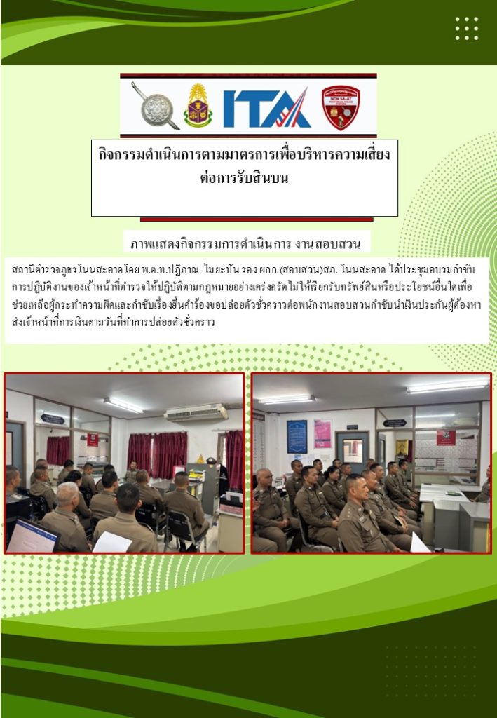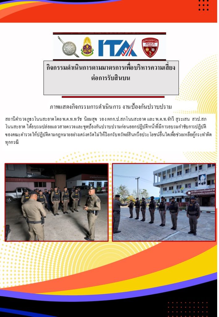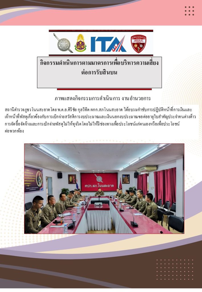 กิจกรรมที่ 3 : การดำเนินการตามมาตรการเพื่อบริหารความเสี่ยงต่อการรับสินบนของ สภ.โนนสะอาด